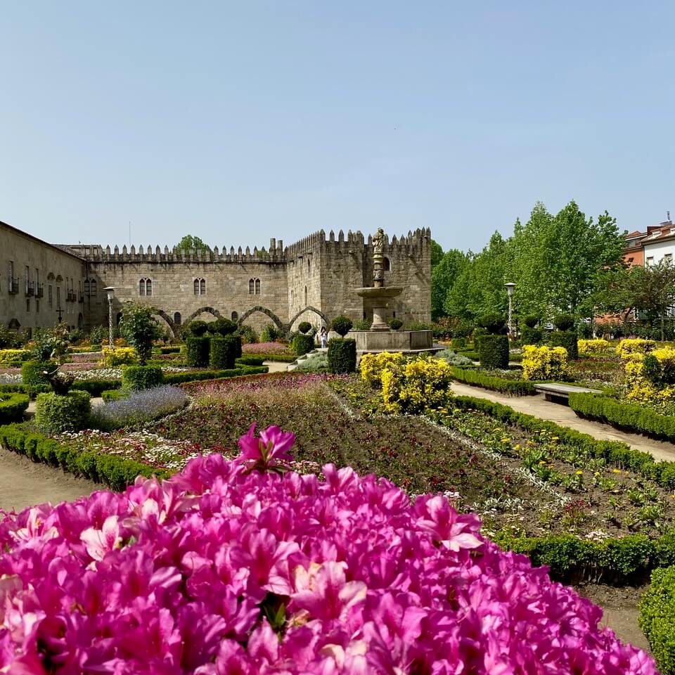 Nach so viel Kirchen und Religion genießen wir den Garten der Heiligen Barbara (Jardim de Santa Bárbara). Der Garten grenzt direkt an die mittelalterliche Fassade des Erzbischöflichen Palais und ist im Stil eines klassischen französischen Gartens angelegt, mit präzise geschnittenen Hecken und symmetrischen Blumenarrangements.