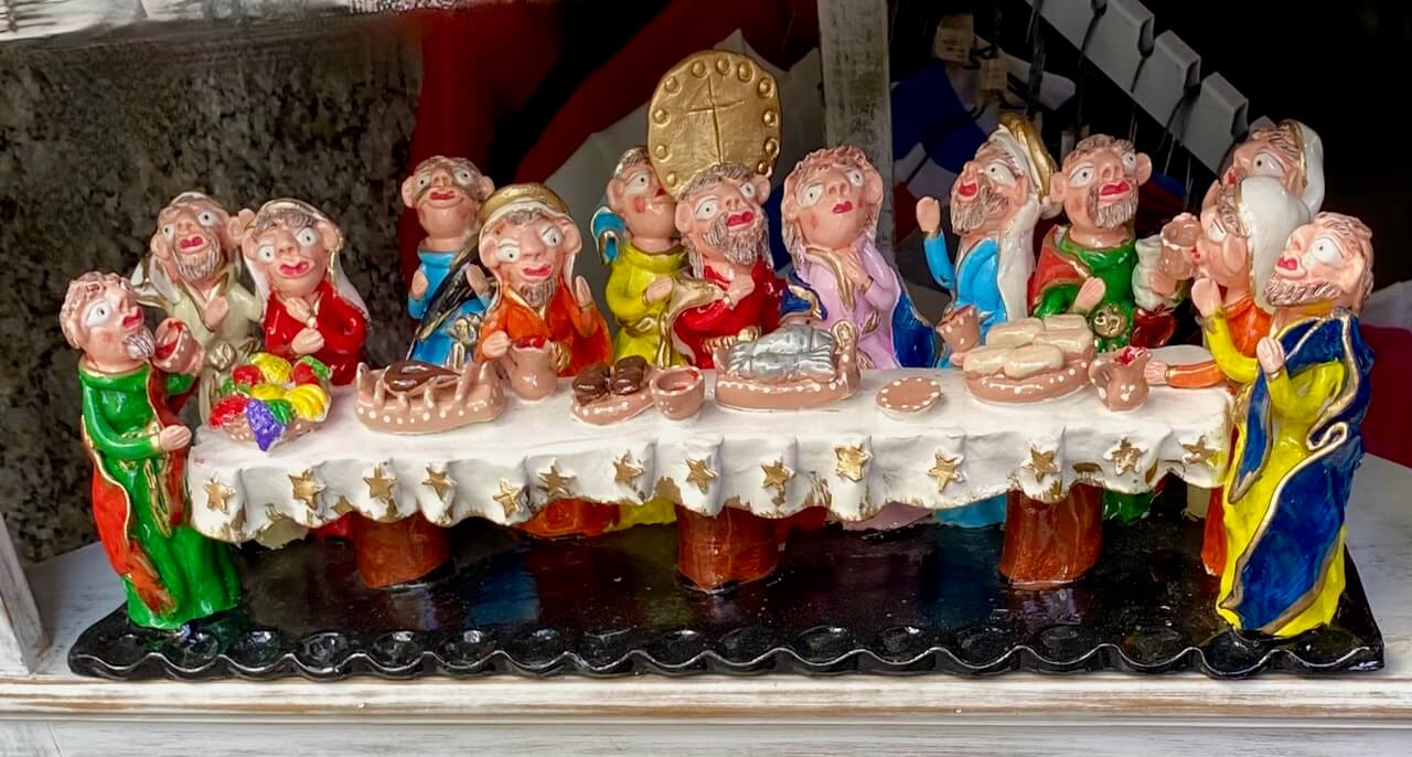 Die Schaufenster sind voll von skurrilen Souvenirs – die auf das Leben und Sterben von Jesus hinweisen.