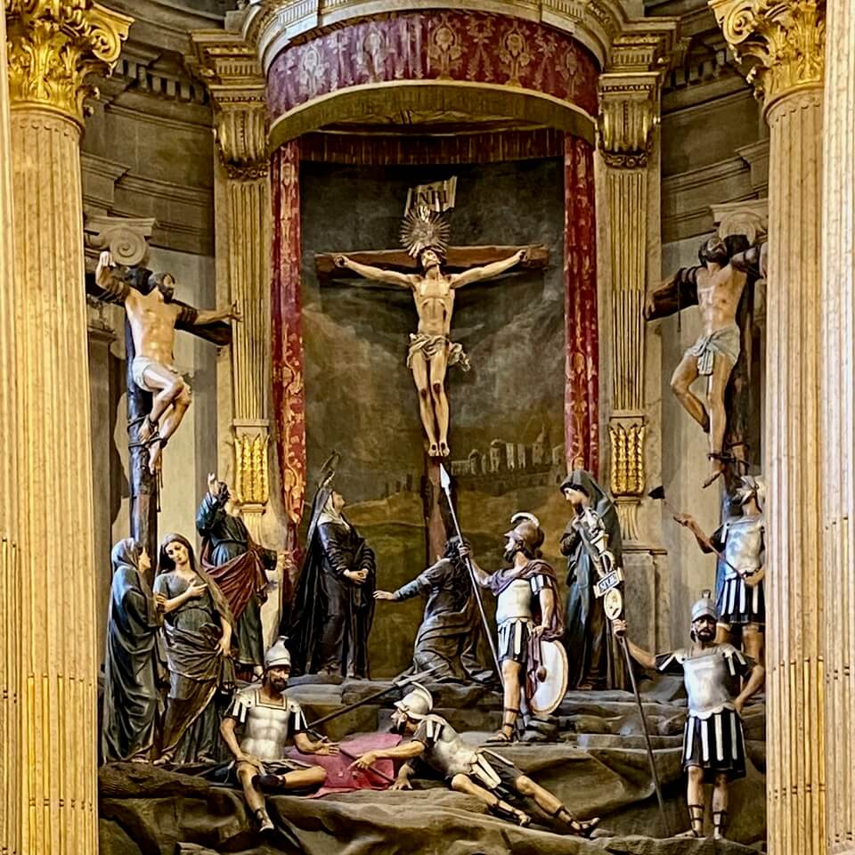 Besonders bemerkenswert ist (m.M. nach) das Altarbild mit einer Vielzahl an herumlungernden römischen Soldaten.