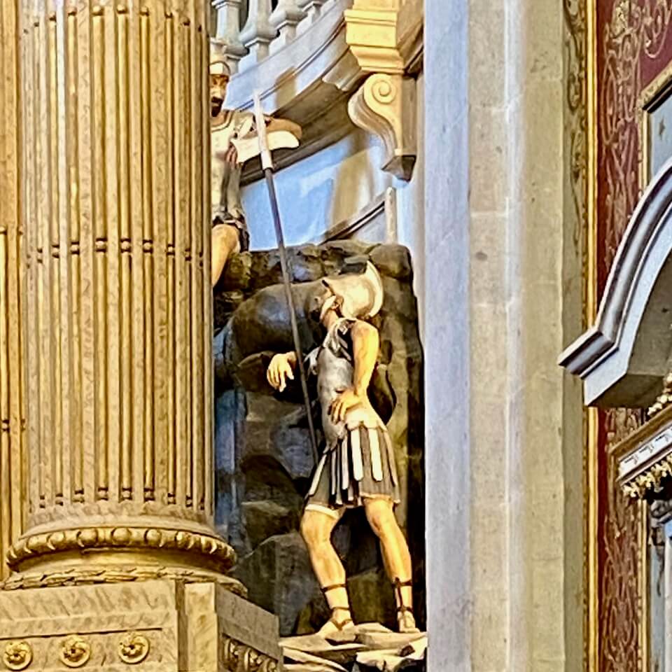 Rund um die Kathedrale gibt es „Überreste“ von römischen Statuen. Mein Alter Ego Dr. Tirza hat sofort überlegt, ob sie die Römer wegen jahrtausendelanger illegaler Ablagerungen in Form von Steinen klagen könnte.