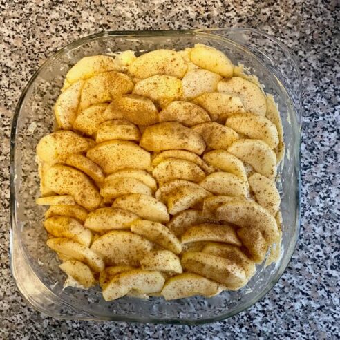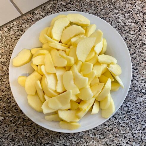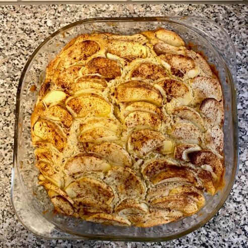Schon seit mehreren Wochen plane ich, einen Apfelkuchen zu machen. Heute ist es so weit. Mein Lieblingsrezept ist dieses: Apfelkuchen Scharlotka. Ich verwende allerdings nur 90 g Zucker und anstelle von Schmand (den es bei uns nicht gibt), Sauerrahm.