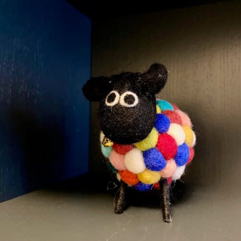 Mein schwarz-buntes Schaf muss nicht vor Gericht. Es führt ein ruhiges Dasein in meiner Wohnung und erfreut mich jedes Mal, wenn ich es anschaue.