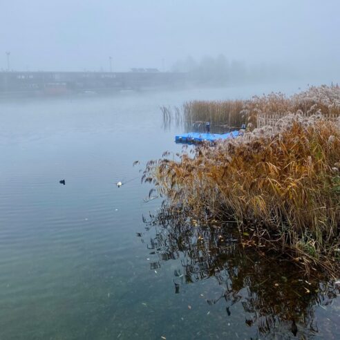 Ich habe keine Lust, schon wieder nach Hause zu gehen und mache mich auf, den Nebel an der Neuen Donau zu erkunden. Hier herrscht eine wunderbar ruhige Stimmung. Noch mehr Balsam für die Seele. Es sind nur wenige Menschen unterwegs; vor allem Hunde mit ihren Frauchen und Herrchen.