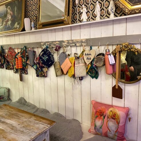 Wir genehmigen uns erst einmal einen Kaffee im Zuckerstück, das mich vom Konzept her an das Wiener Café Vollpension erinnert. Evelyn meint, ich müsste einen Kulturschock erleiden, aber als Ausmist-Coach bin ich abgebrüht und ein paar Stehrümchen bringen mich nicht aus dem Konzept.